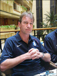 5ÀÏ 2006 »ï¼º ÇÏ¿ìÁ¨ K¸®±× FC ¼¿ï-´ë±¸ FC¸¦ °üÀüÇϱâ À§ÇØ ¼¿ù »ó¾Ï ¿ùµåÄŰæ±âÀåÀ» ãÀº º£¾îº¤ ÄÚÄ¡´Â ¾ÈÁ¤È¯°ú Â÷µÎ¸® ¸ðµÎ ¿©ÀüÈ÷ ´ëÇ¥ÆÀ¿¡ »ÌÈú °¡´É¼ºÀÌ ÀÖ´Ù°í ¹àÇû´Ù.