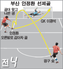 ¿Ü±¹ÀÎ ¼±¼ö Çα¸°¡ PA ¿À¸¥ÂÊ¿¡¼ ¶§¸° Á߰Ÿ® ½¸ÀÌ ¿ÞÂÊ °ñ Æ÷½ºÆ®¸¦ ¸Â°í Èê·¯³ª¿Ô´Ù. À̶§ GA ¿ÞÂÊ ¸ð¼¸® ºÎ±Ù¿¡ ÀÖ´ø ¾ÈÁ¤È¯ÀÌ À绡¸® °øÀ» °¡·Îë°í, ÇÑÂ÷·Ê ²ªÀº µÚ ¿À¸¥¹ß·Î °¨¾ÆÃ¡´Ù. °øÀº °æ³² °ñ¹® ¿À¸¥ÂÊ ±¸¼®À» ÆÄ°íµé¾î°¬´Ù.